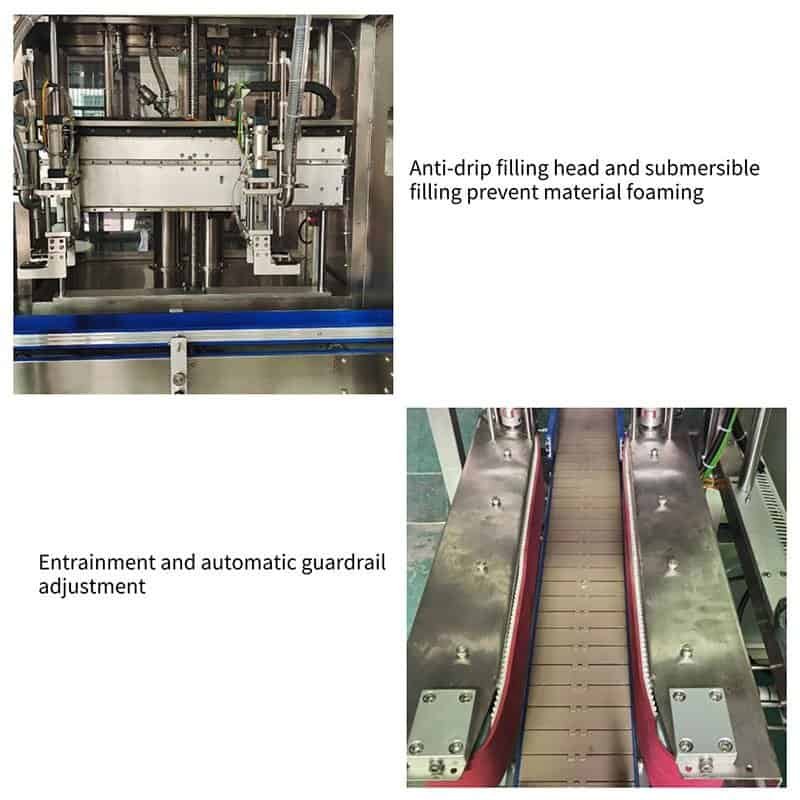 The special filling valve allows the laundry detergent to flow down the bottle wall in an umbrella shape, reducing impact foam and avoiding overflow. The anti-corrosion and anti-drip filling head ensures that there is no drawing or residue after closing, keeping the working environment clean.