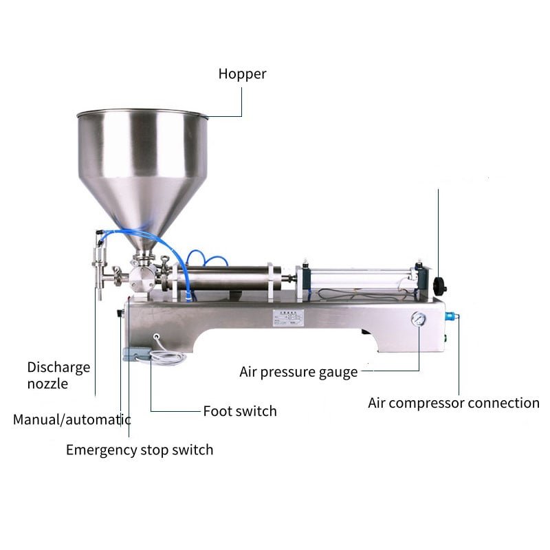 This machine is the semi-automatic pneumatic type paste cream filling machine, it needs to connect the air compressor.